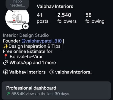 Vaibhav Interiors is a professional interior design firm based in Virar West, Mumbai, providing complete home and commercial interior solutions. We specialize in modular kitchens, false ceilings, wardrobes, TV units and full home interior & renovation.